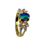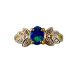 Full Details:  Australian Boulder Doublet Opal with 8 White Cubic Zirconia Claw Set Ring  Opal Colour - Electric Green / Gold / Blue Pattern - Flashy Opal Shape - Oval Opal Width - 6.00 mm...