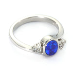 Australian Doublet Opal & White Sapphire 925 Sterling Silver Ring