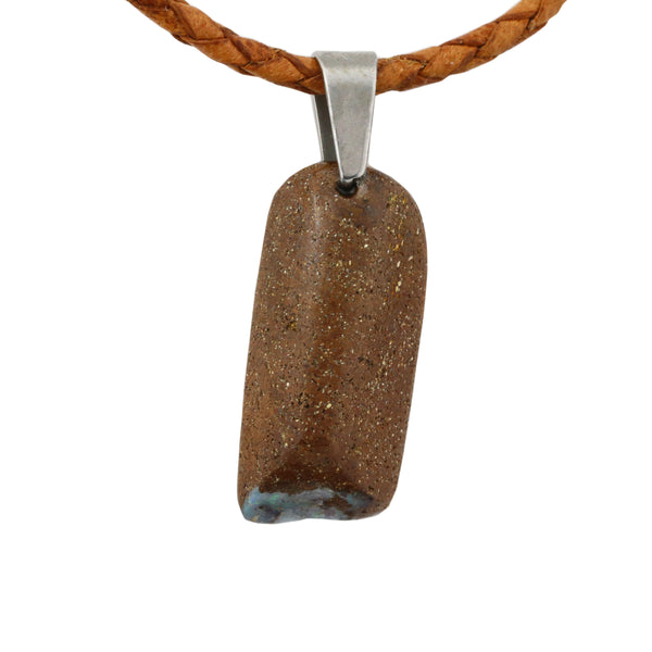 Full Details:  Natural Australian Boulder Opal & Leather Plainted Necklance
