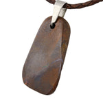 Full Details:  Natural Australian Boulder Opal & Leather Plainted Necklance Opal Colour - Red / Gold / Blue / Green Speckles Shape - Free Form Material - Stainless Steel Bale & Leather...