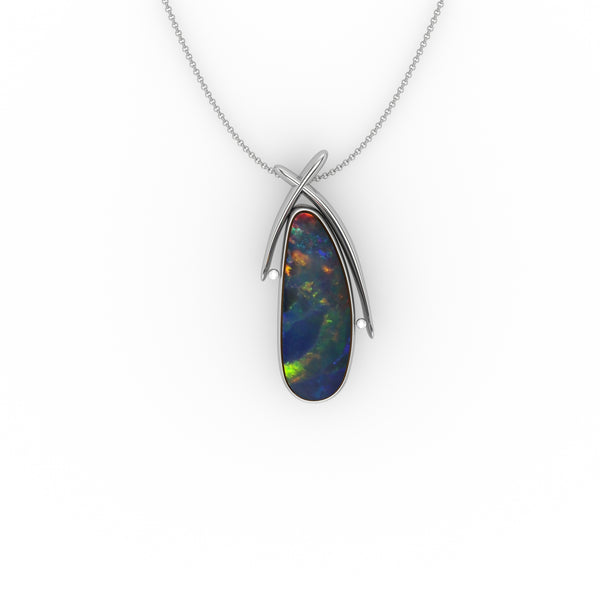Amelia Pendant - Boulder Opal Doublet Handcrafted in 9kt White Gold Pendant