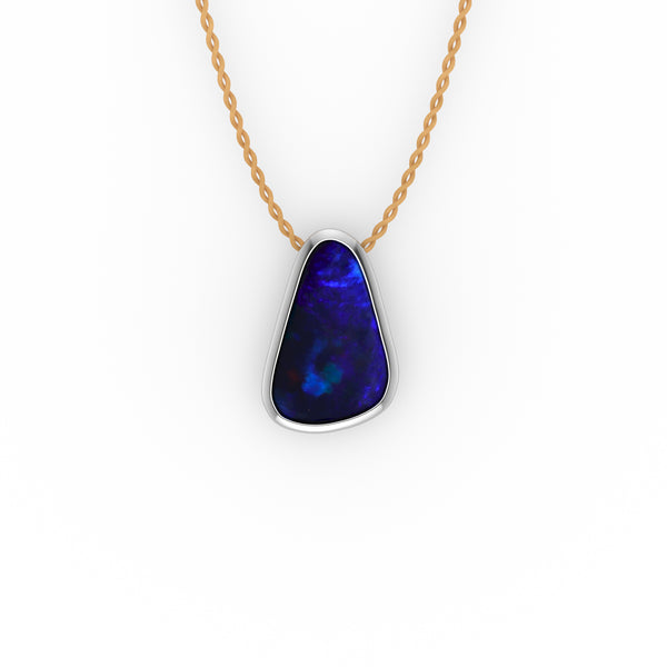Aspen Pendant - Boulder Opal Doublet Handcrafted in 9kt White Gold Pendant