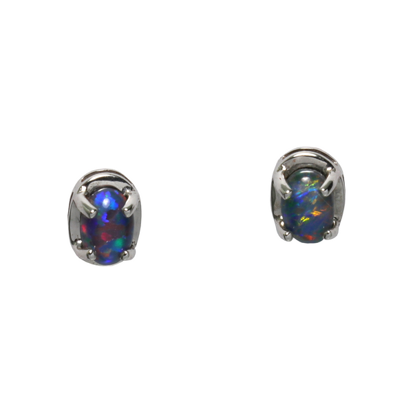 Australian Triplet Opal 14 kt White Gold Ear Rings