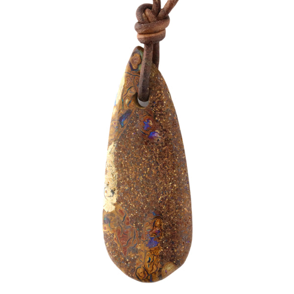 Full Details:  Natural Australian Boulder Opal & Adjustable Leather Necklace
