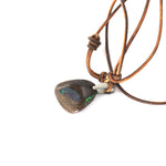 Full Details:  Natural Australian Boulder Opal with Adjustable Leather Necklace