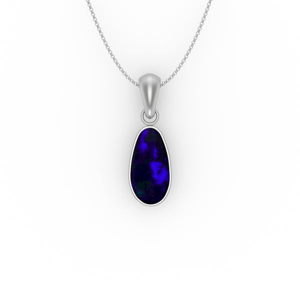 Briley Pendant - Boulder Opal Doublet Handcrafted in 9kt White Gold Pendant