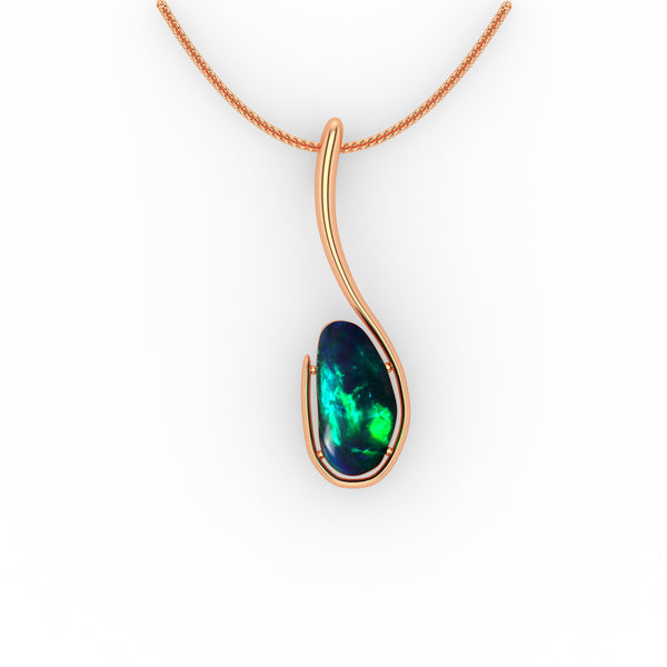 Amanda Pendant - Black Opal Solid Handcrafted in 9kt Yellow Rose Pendant