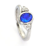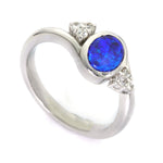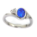 Full Details:  Australian Boulder Doublet Opal with 6 White Sapphires Bezel Set Ring  Opal Colour - Royal Blue Opal Shape - Oval Opal Pattern - Mixed Opal Weight - 1.00 carats  Opal Width - 5.89...