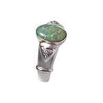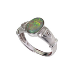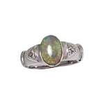 Full Details: Australian Solid Crystal Opal Bezel set opal with 6 Diamonds Colour - Green Shape - Oval Ring - 18 kt White Gold Size - Aus M 1/2 -...