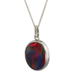 Full Details:  Australian Black Doublet Opal Bezel set pendant Colour - Red/Green/Blue/Gold Pattern - Broad Rolling Flash Shape - Oval Material - 925 Sterling Silver This beautiful one of a kind...