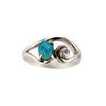 Full Details:  Australian Boulder Doublet Opal with White Cubic Zirconia Claw Set Ring