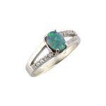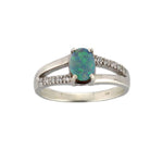 Australian Doublet Opal & White Cubic Zirconia 925 Sterling Silver Ring
