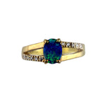 Full Details:  Australian Boulder Doublet Opal with 5 White Cubic Zirconia Claw Set Ring  Opal Colour - Electric Green / Blue Opal Shape - Oval Opal Width - 6.00 mm Opal Length - 8.00 mm Ring...