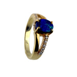 Full Details:  Australian Boulder Doublet Opal with 5 White Cubic Zirconia Claw Set Ring