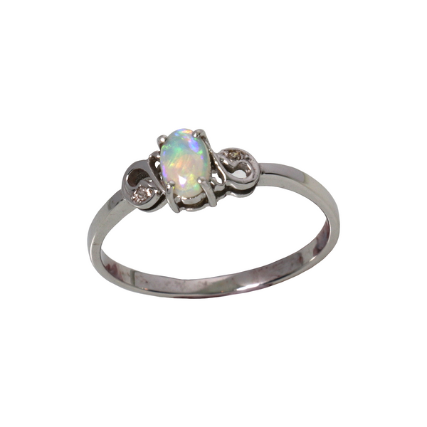 Full Details:  Australian Solid Crystal Opal Claw set Opal Colour - Green Shape - Oval Ring - 18 kt White Gold Size - Aus Q - US 8  Immediate despatch This...