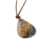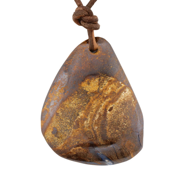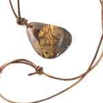 Full Details:  Natural Australian Boulder Opal with Adjustable Leather Necklace Pattern - Tiger Colour - Dark Blue Shape - Free Form Material - Adjustable Length Leather Necklace This handcrafted, one of a...