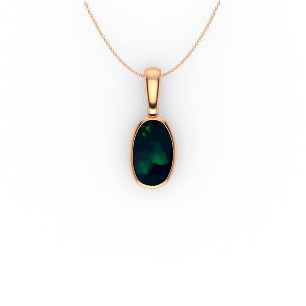 With the natural beauty Australian Opal exhibiting the rich emerald green colour and timeless design, this pendant will undeniably command attention.   The classic wide bezel and quintessential bale will look smart and fetching for...
