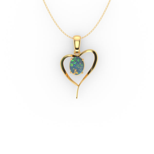 Sometimes feelings can be difficult to put into words, here is a pendant that will show her your love and will undeniably command attention.  As only seen in Australian Opal, the Electric Green, Moody Blue and sparkles of Lipstick Red colours dance across the Opal.  The delicate gold heart shape accentuates the Opal Doublet, will delight your special someone and give the feeling of love.