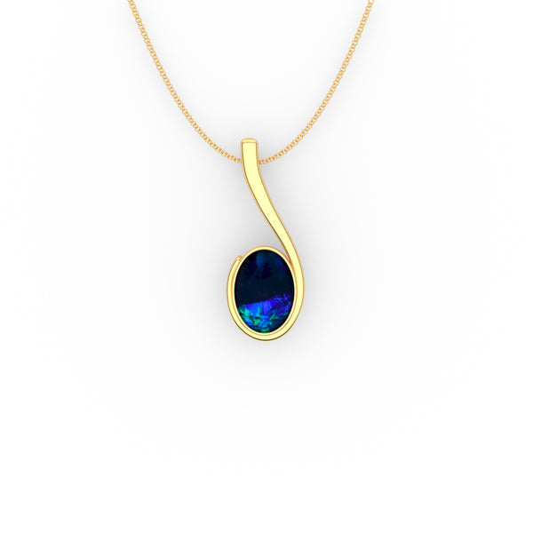 This ultra modern pendant design accentuates the richness of the Royal Blue colour of the Opal doublet.    With its clean sleek curve, it encapulates the bezel and seamlessly extends upwards to form a minimalist styled...